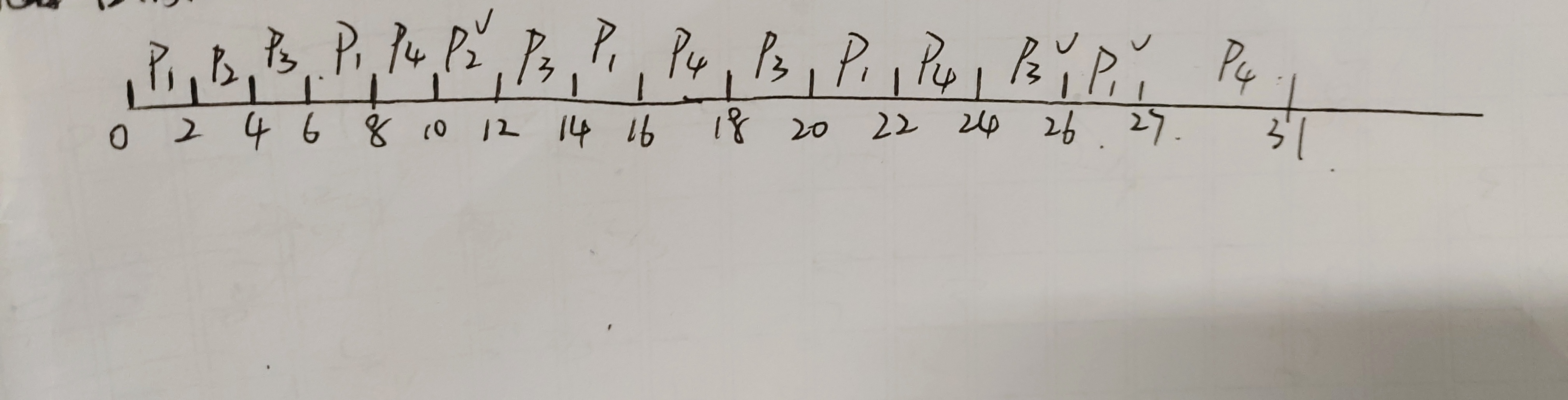 (6)轮转调度算法:这是一个剥夺式调度算法,系统耗费在进程/线程切换上的开销比较大,这个开销和时间片的大小有关。此算法的资源利用率和吞吐率较高,周转率较快,响应时间较短,是一个较公平的算法。优缺点:紧迫任务响应慢。 时间片选取要从多方面的因素进行考虑。 太小,会频繁发生中断、进程上下文切换,增加系统开销,但利于短作业 ;太大,退化成FCFS ,所以时间片应该略大于一次典型交互的时间。