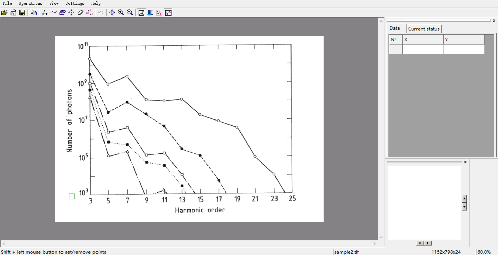 现在直接移动鼠标,在要的线上抓取即可,画多的线可以用“Eraser”擦除。旁边显示的就是抓取的数据。