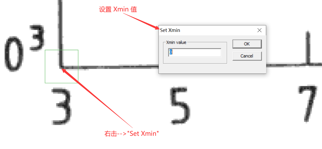 光标点原点 ---> 右击 ---> "Set Xmin" ---> 设置Xmin值(这里我随便取的,如果要修改,可以:“Operations” ---> “Adjust the scale” )