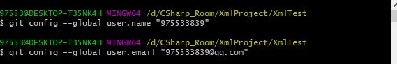 第一次使用git要先设置使用者名字以及邮箱,如下