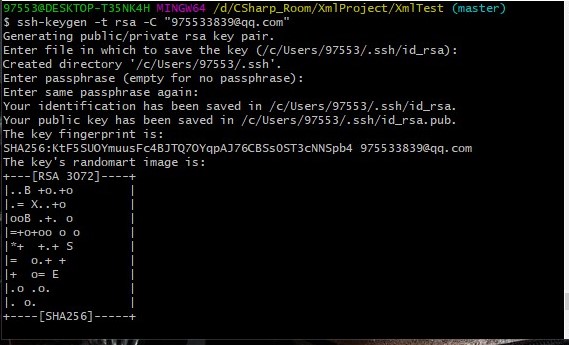 使用 $ ssh-keygen -t rsa -C "youremail@example.com" 命令创建SSH KEY 如下