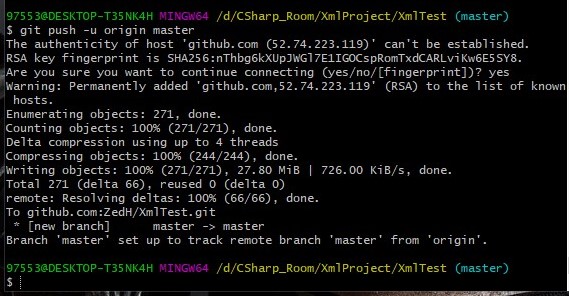 使用 git push -u origin master 命令将本地项目推送到远程仓库GitHub上(第一次推送需要加上 -u 参数)