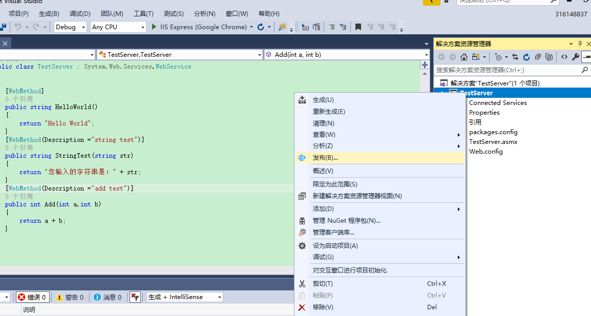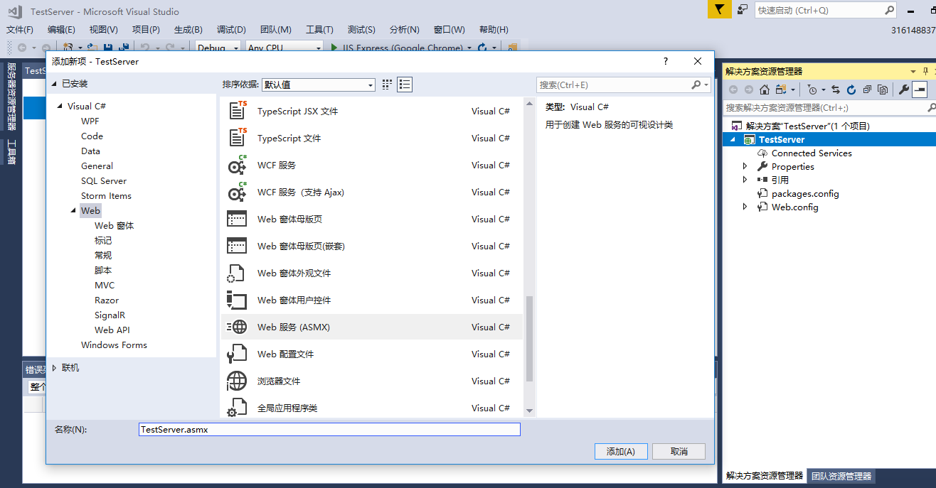 2.在新建的项目上右键 添加新项目 选择Web服务