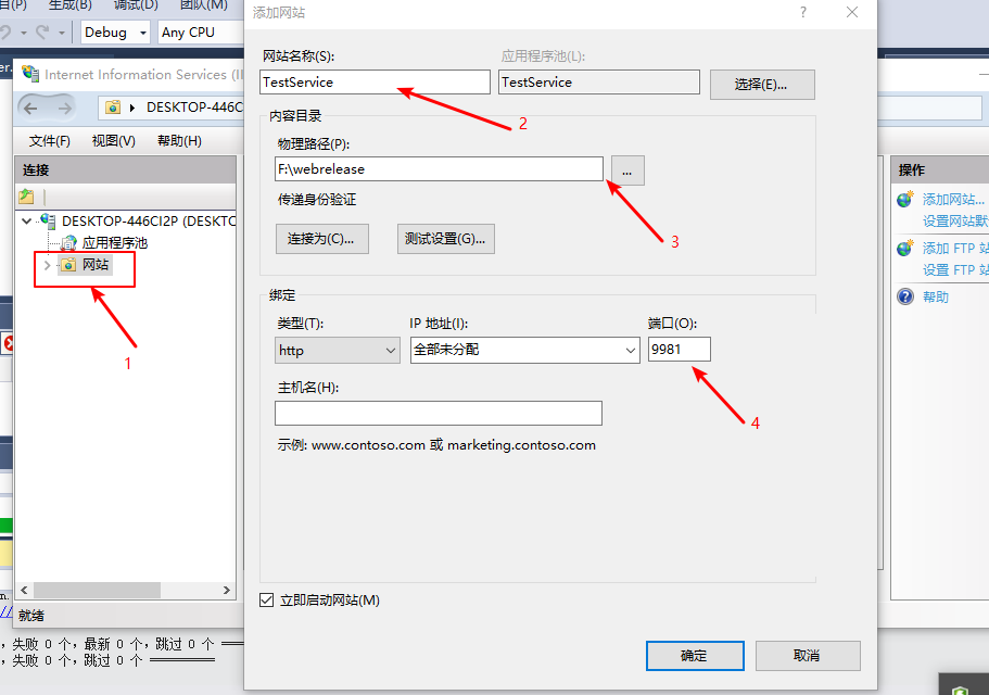 3打开IIS管理器 在网站下面添加新的网站 如下