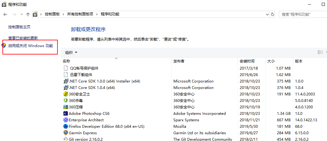 2.出现上述错误的原因是相关window功能没有开启 解决如下