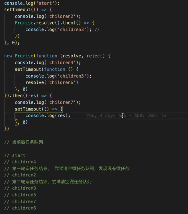 然后把它自身的children6推进去最后一轮的微任务队列中,再children7之后执行