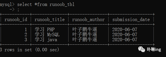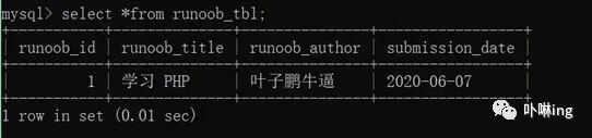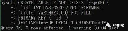由于刚刚把表给删了,所以我重新创建了一个名字为runoob_tbl的表,