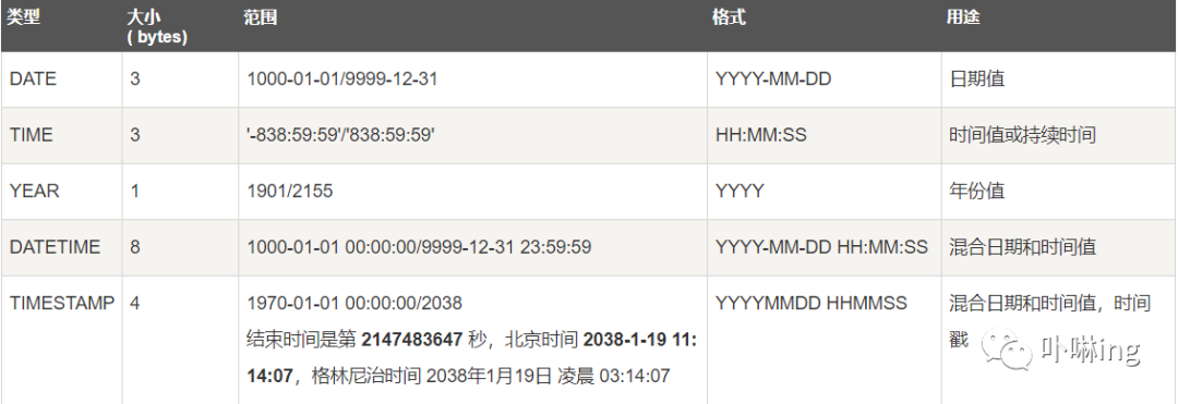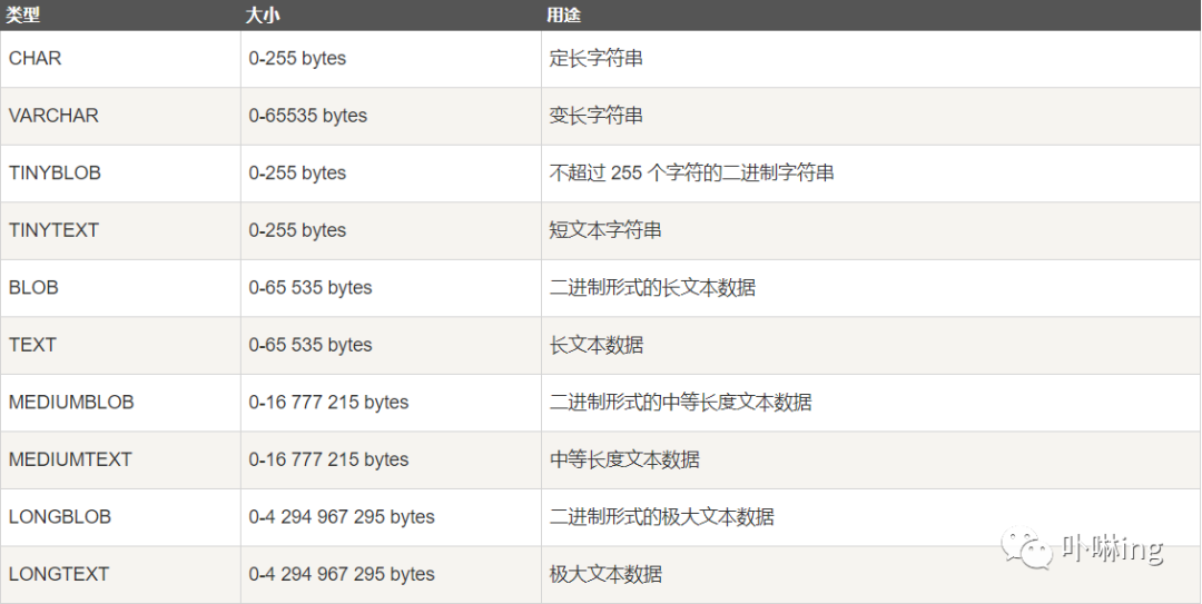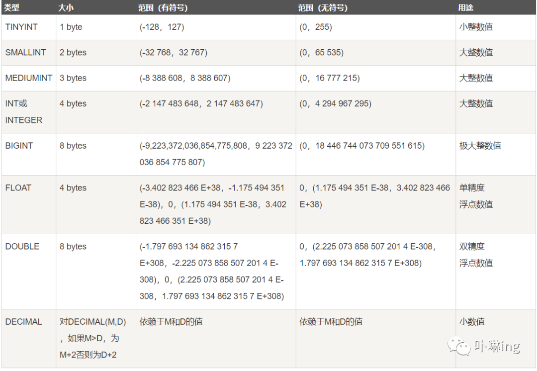 MySQL支持多种类型,大致可以分为三类:数值、日期/时间和字符串(字符)类型。
