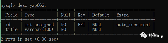 我创建了名为yzp666的数据表,这里面只有id和title两个元素。