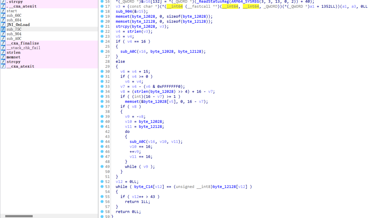 ida64位打开之后函数挺少,一个一个看,然后在sub_75C函数最后找到一个类似最后验证的功能