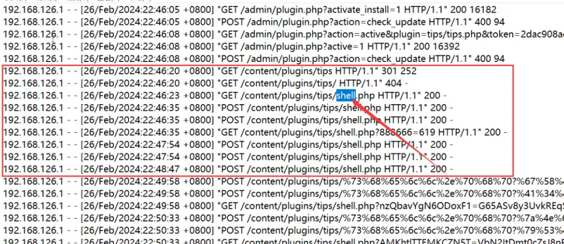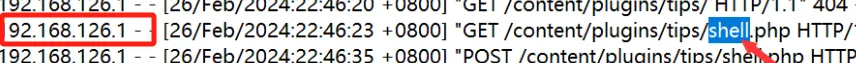 发现某一ip对马进行了多次请求,这就是黑客通过访问这个目录来rce,所以ip就显而易见了