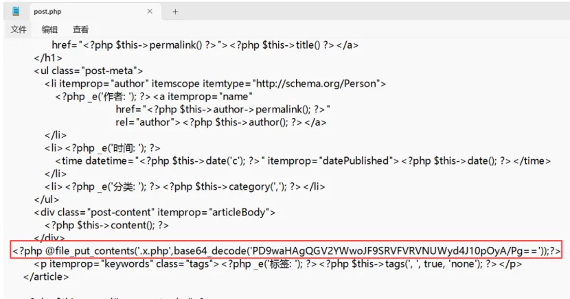 意思就是写入一个文件.x.php,文件内容是用base64编码的,写入的时候解码完成写入.x.php