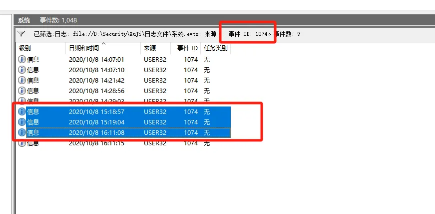 事件ID 1074 是用于记录由用户、进程或系统管理员启动的系统重启、关闭或注销事件