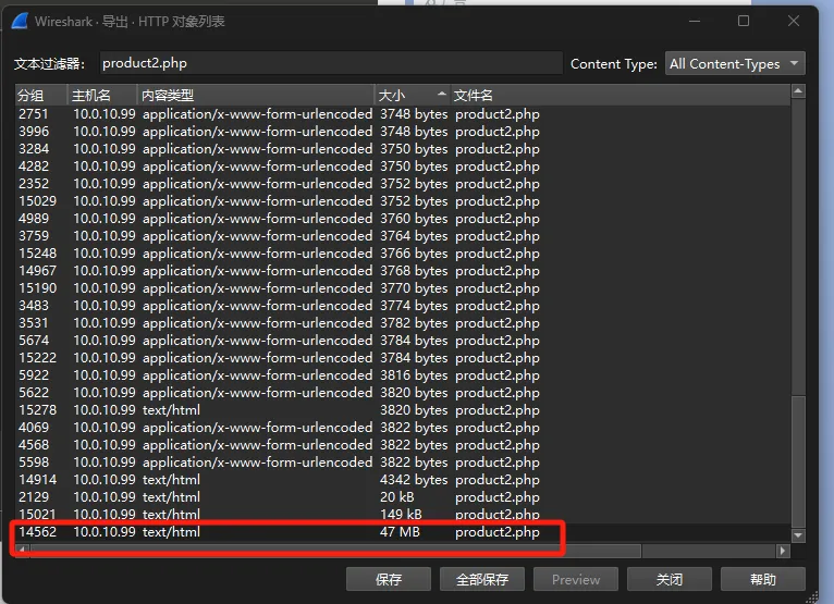 过滤http服务,数据包从大到小排序一个一个看(请求包)