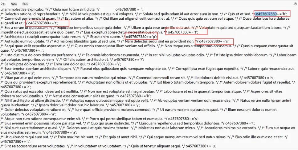 js文件中除了给o457607380变量一直加字符串的,其余的很多注释都是随机的拉丁文句子,用来混淆的