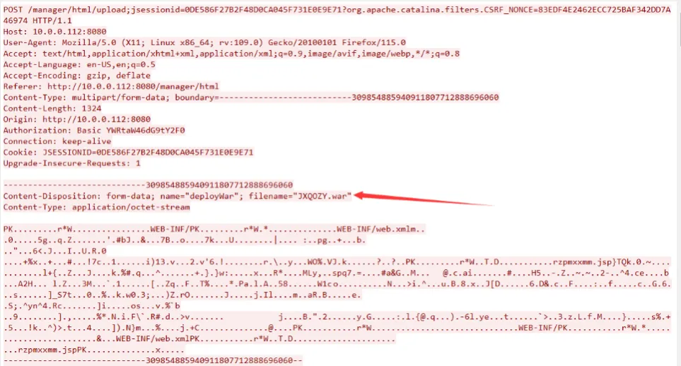 过滤http,发现有一堆访问examples目录的流量,然后还访问了/manager/html 和 /host-manager/html等敏感目录,所以追踪http流