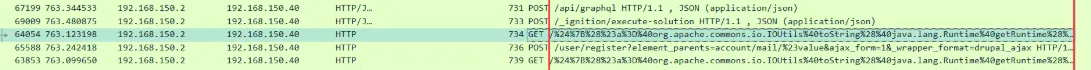 然后http筛选的过程中,还会发现一段特别突兀的请求,因为带着java的Runtime类,很可疑,因为一般这种就是测试RCE