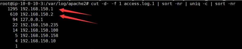 如果为了分析更方便一些,可以在access.log.1的文件里面筛选访问次数较多的ip,然后固定去查看这些IP的请求,因为扫描器的话会频繁发送大量请求