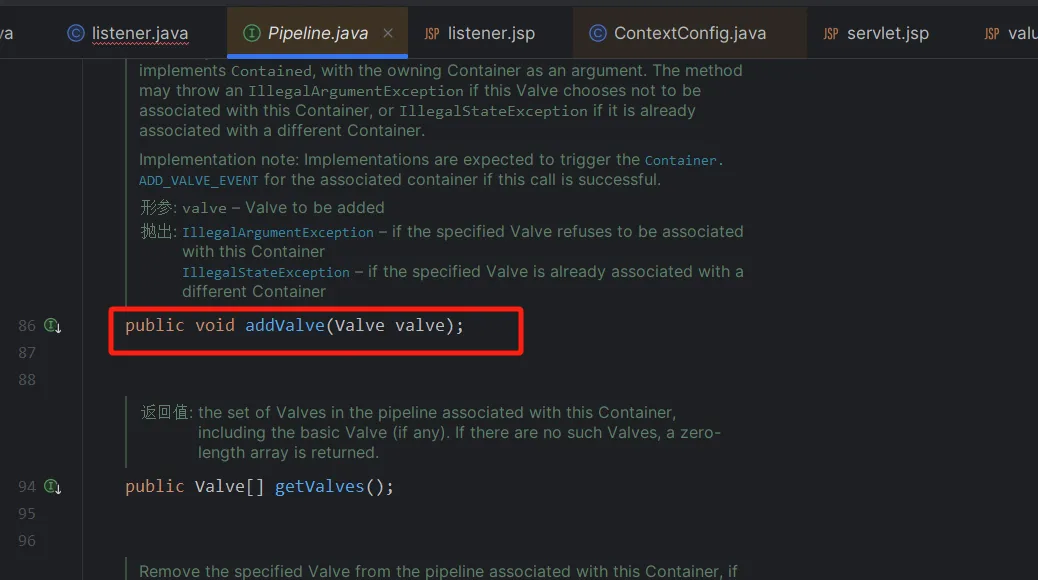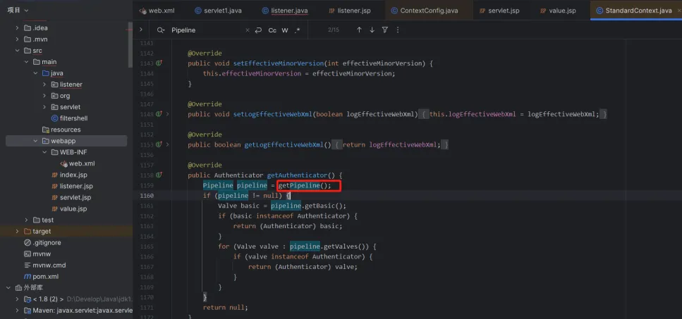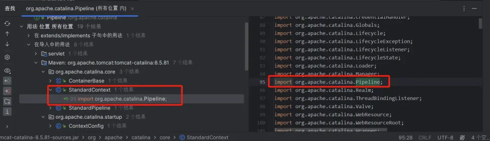 查找用法之后,发现了一个特别熟悉的类StandardContext,导入了这个Pipeline
