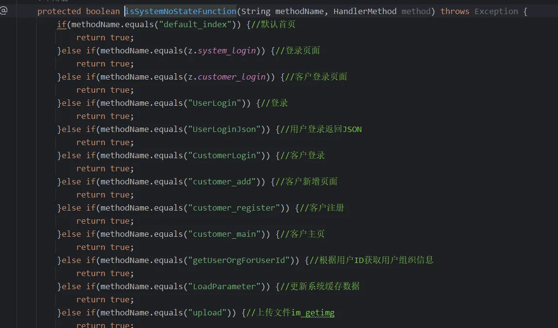 然后跟进去isSystemNoStateFunction方法,看一下哪些方法可以前台访问