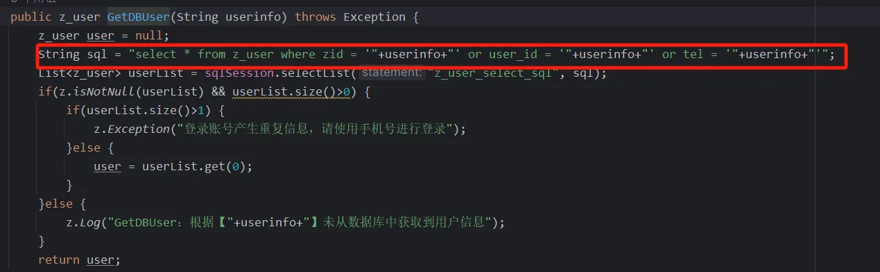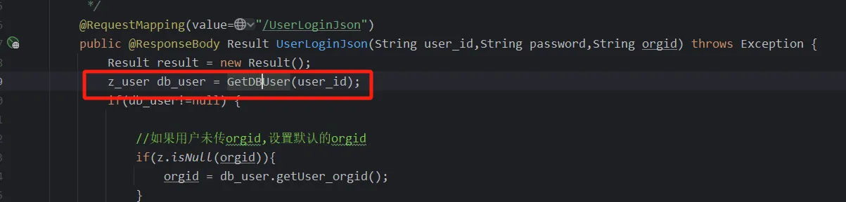 找到这个方法,然后发现传参进去了user_id,用来查询是否登录