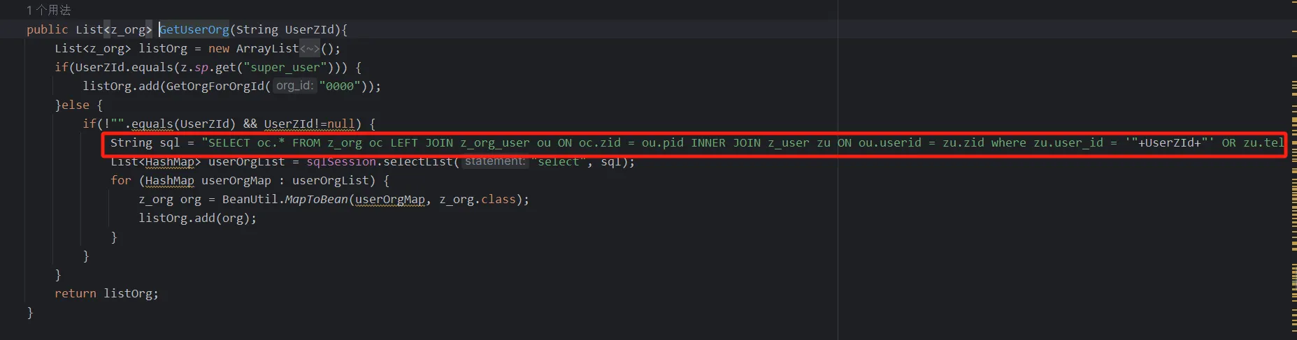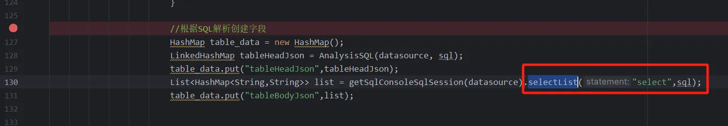 然后在126行有一个sql解析中,selectList会毫无过滤的执行一个从sqlinfo传入的sql语句