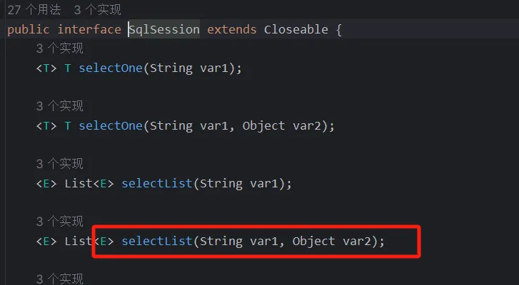 selectList是SqlSession接口中的方法,然后就是可以用来执行sql语句