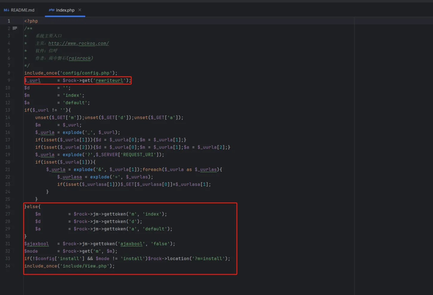 然后发现开头检测rewriteurl参数内容,然后将其再传递给$_uurl参数,当它不为空走if中的代码,为空则走else,然后我们发现我们看请求包该参数是空的,所以直接看else代码