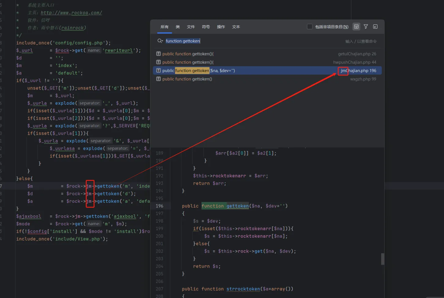 然后发现其中对m,d,a三个参数的内容都做了一个gettoken函数的处理,但是这里我们是跟不进去的我们可以直接搜索该函数的定义