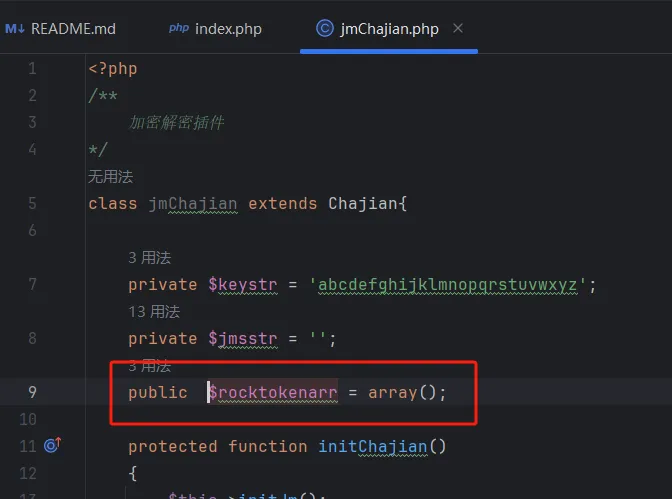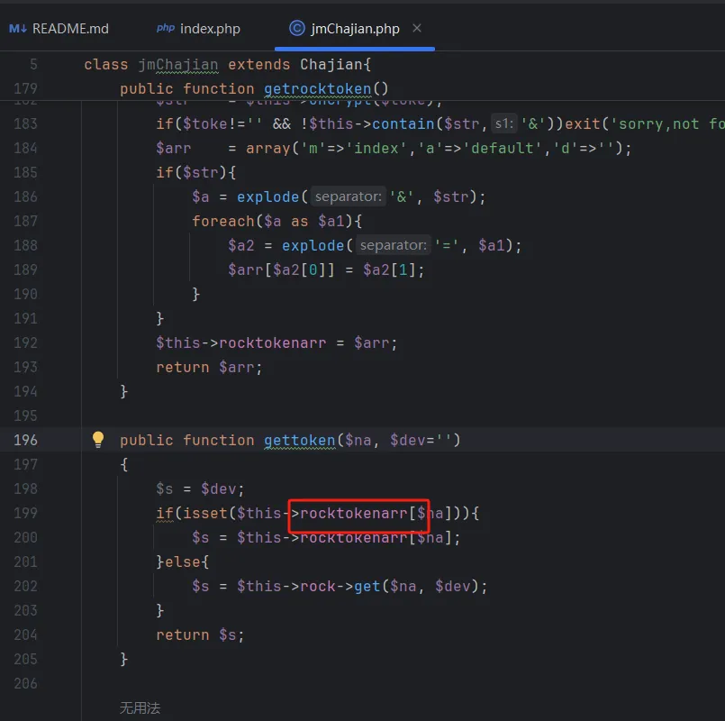 然后跟进去发现就是将这三个参数放到数组里面,如果没有传递的参数内容,就按照默认的内容gettoken('m', 'index');(白费心思,还以为是过滤呢~)