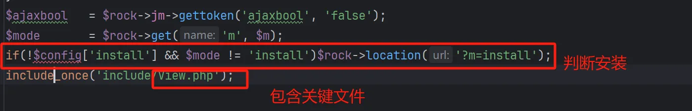 那就回到index.php中继续往下看,发现把m有又传递给了mode参数,然后还多了一个ajaxbool参数,并且默认赋值为false(最用后面说)