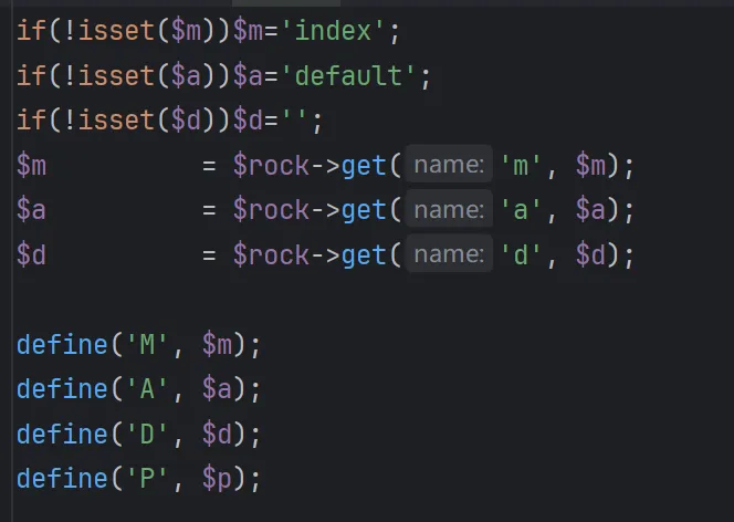 然后就是又一遍的判断a,d,m是否有值,并且把给大写的M,A,D,P四个参数定义常量