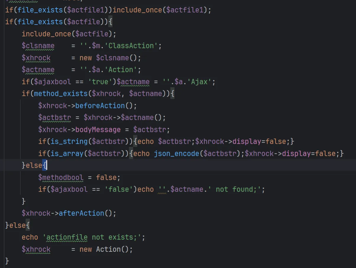 如果存在第一个actfile,就会对m拼接classaction,给a拼接action,如果ajaxbool为true,就给a拼接ajax,然后访问对应文件