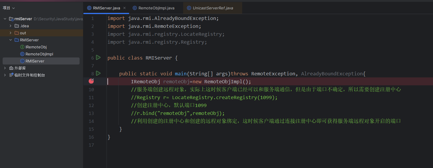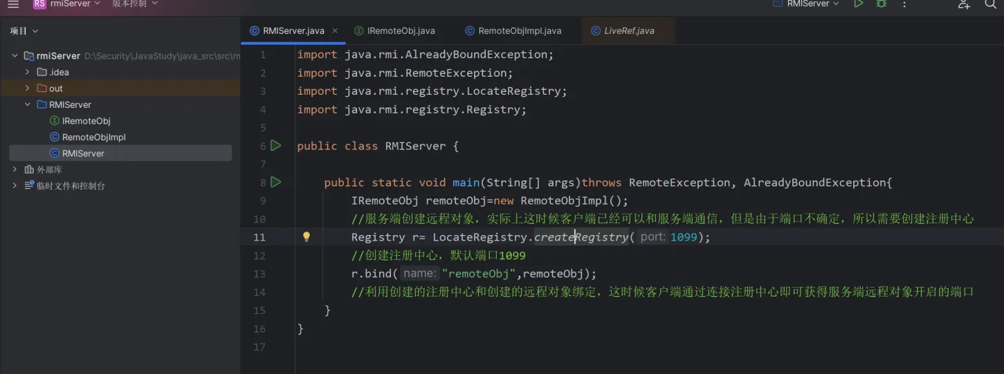 rmiserver创建注册中心+绑定