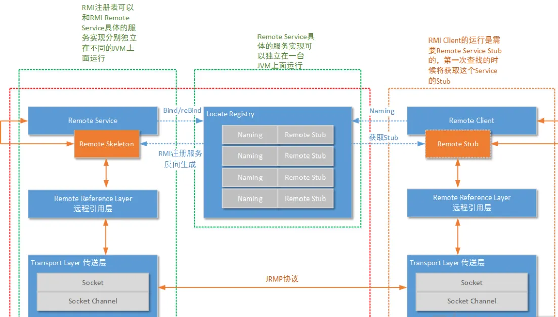 而漏洞点在客户端和服务端都有,因为都会清理内存,存在于skel和stub,也就是所谓的JRMP绕过(还没学,看其他博主博客学习的,之后会补充对应笔记)