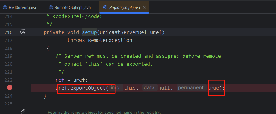 用p神的理解来说,RMI Registry是一个远程对象管理的地方,可以理解为一个远程对象的“后台”。我们可以尝试直接访问“后台”功能,比如修改远程服务器上Hello对应的对象: