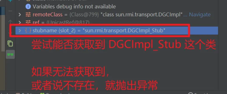 然后判断尝试是否可以获取到DGCImpl_Stub,如果获取不到就抛出异常