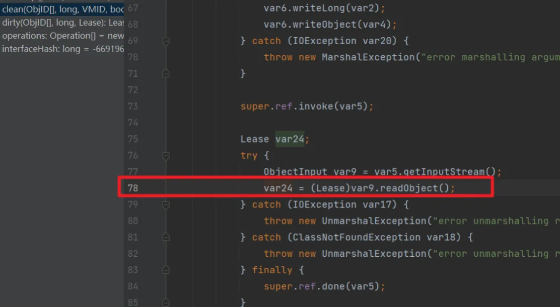 而在这个过程中存在漏洞的地方就是到 DGCImpl_Stub 这个类下有两个clean和dirty两个方法