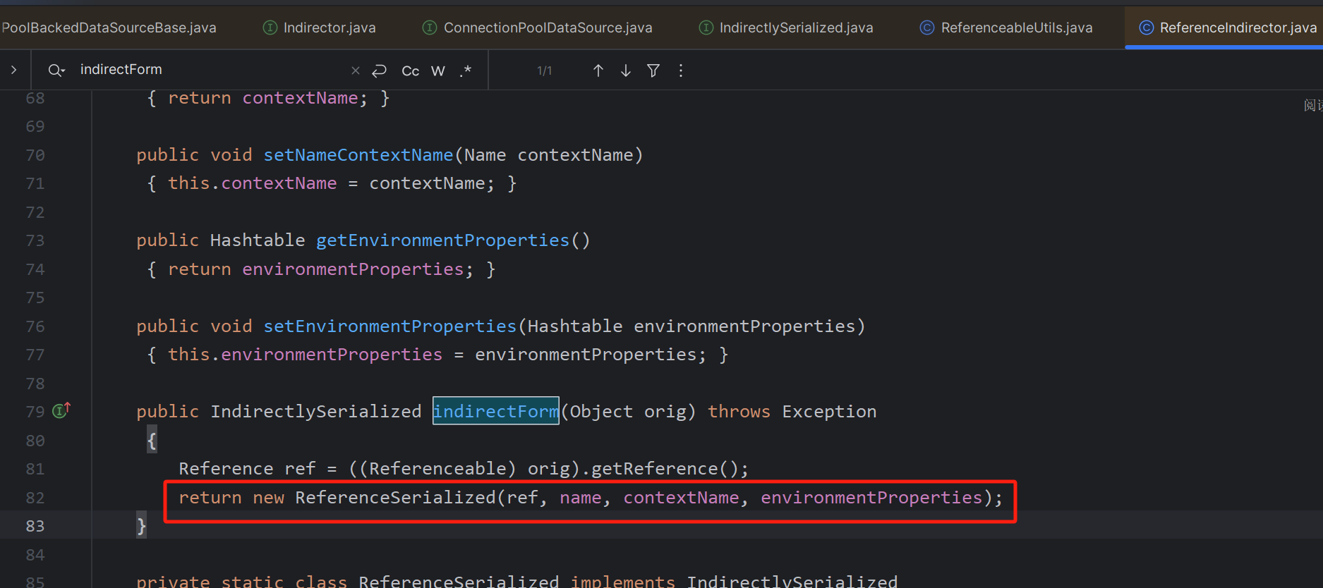 至此,流程就走完了,看似我们的外表是ConnectionPoolDataSource,但实际上已经是ReferenceSerialized(就是indirectForm return的那个类)