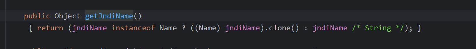 所以再看一下getJndiName方法,发现这个方法他判断若jndiname是name类型,就返回((Name) jndiName).clone(),若不是就返回String
