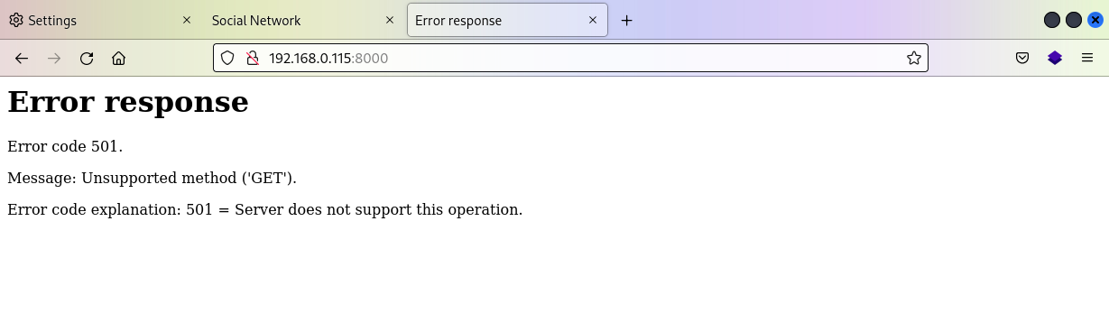 8000端口无法访问,状态码为501,说明是一个服务端错误,给出的理由是不支持 GET 方式进行直接访问;