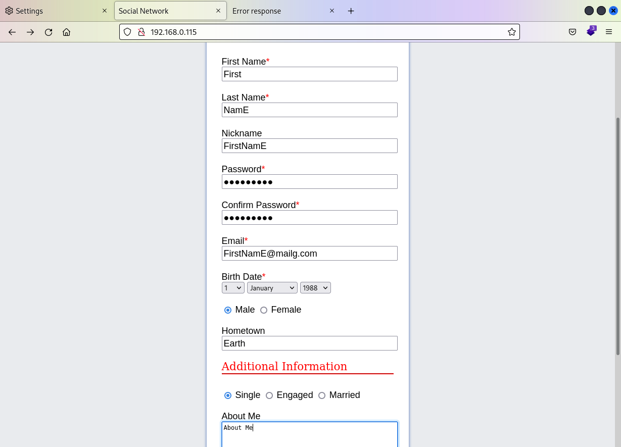 使用一些虚假信息进行注册,创建好账号后,直接进入到了目标Web应用程序,很明显,是一个社交平台;