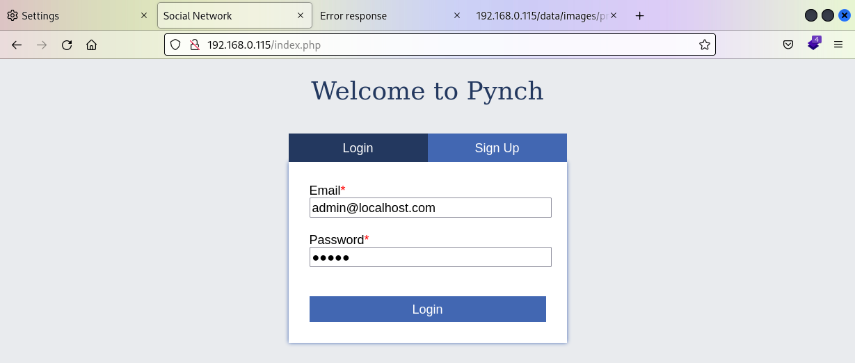 看到这种页面,一般首先想到的是万能密码和暴力破解,根据尝试,发现Email必须是以目标指定格式来书写,也就是说这里必须得搞到至少一个内部邮箱地址,但这里是本地靶机,几乎不可能搞到;