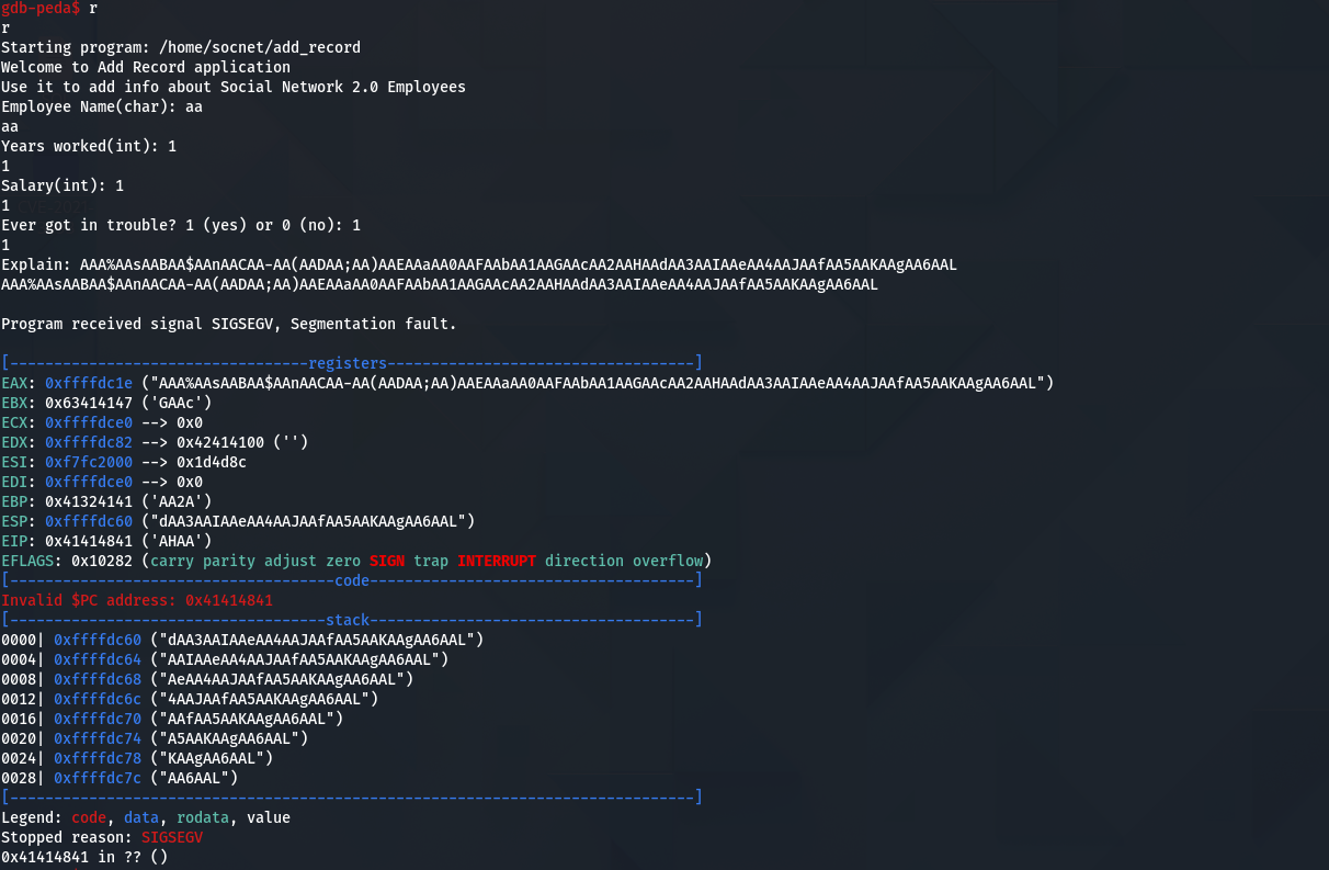 socnet@socnet2:~$ cat payload1 - | ./add_record