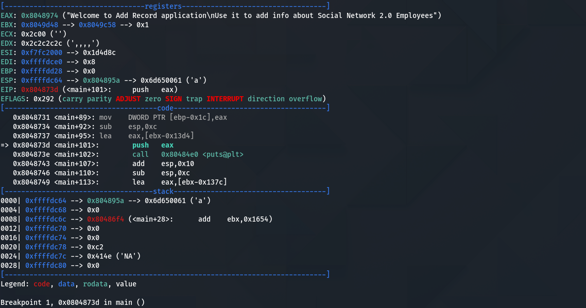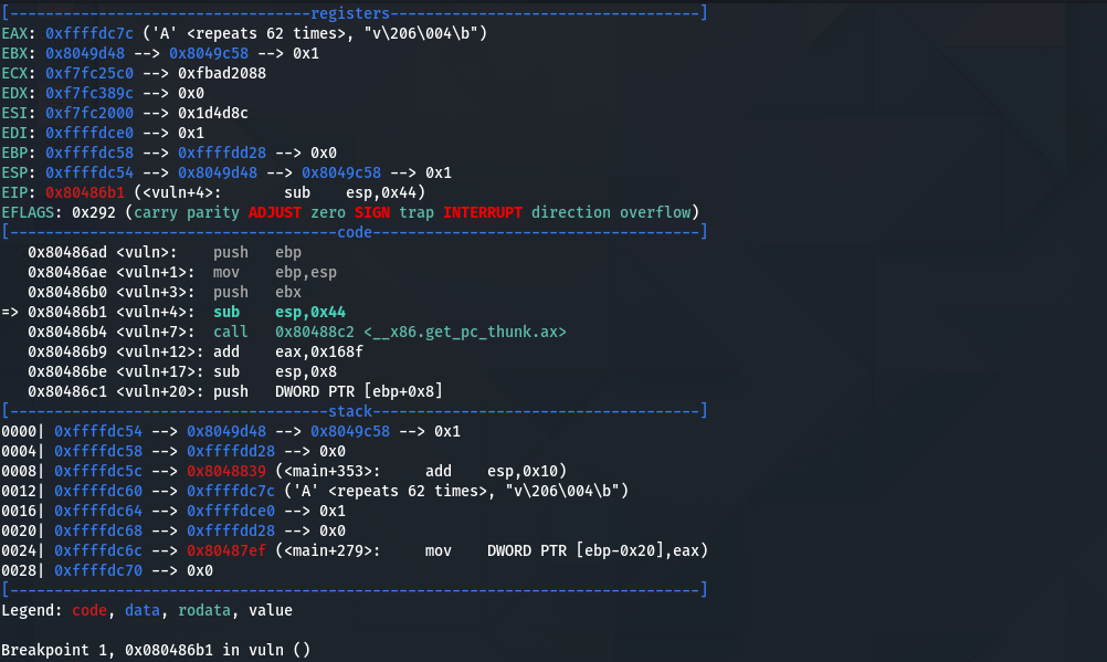 0x080486c1 <+20>: push DWORD PTR [ebp+0x8]