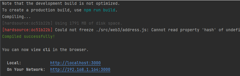 Could not freeze ./src/web3/address.js: Cannot read property 'hash' of undefined