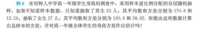 代入课本中最后推出来的结果,得到:s= <script type="math/tex;mode=inline">\frac {1}{40} · \{24[s_1^2+(x_1-x)^2]+16[s_2^2+(x _2-x)^2]\}</script>\frac {1}{40} · \{24[s_1^2+(x_1-x)^2]+16[s_2^2+(x _2-x)^2]\}