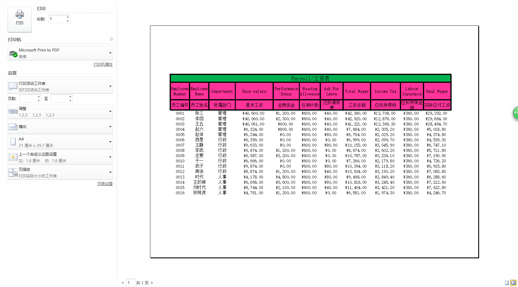 第七次作业 工资表