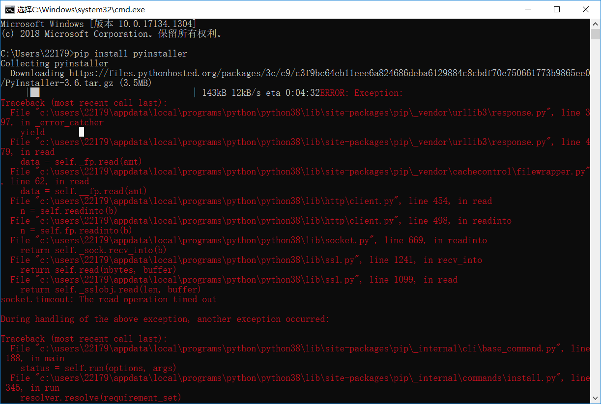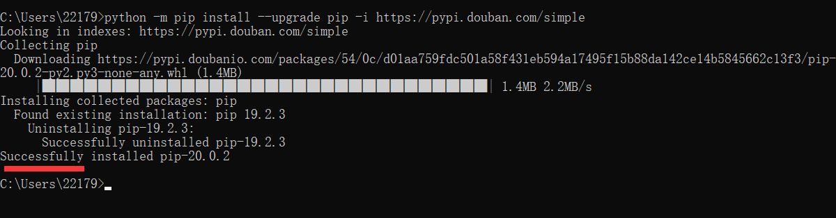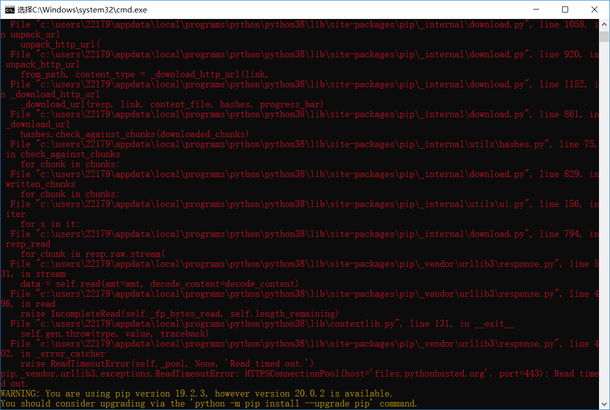 使用国内的源下载:python -m pip install --upgrade pip -i https://pypi.douban.com/simple